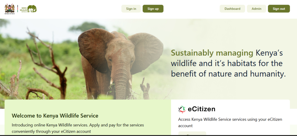 - Visit the official KWS Portal on eCitizen via https://kws.ecitizen.go.ke/ and sign in