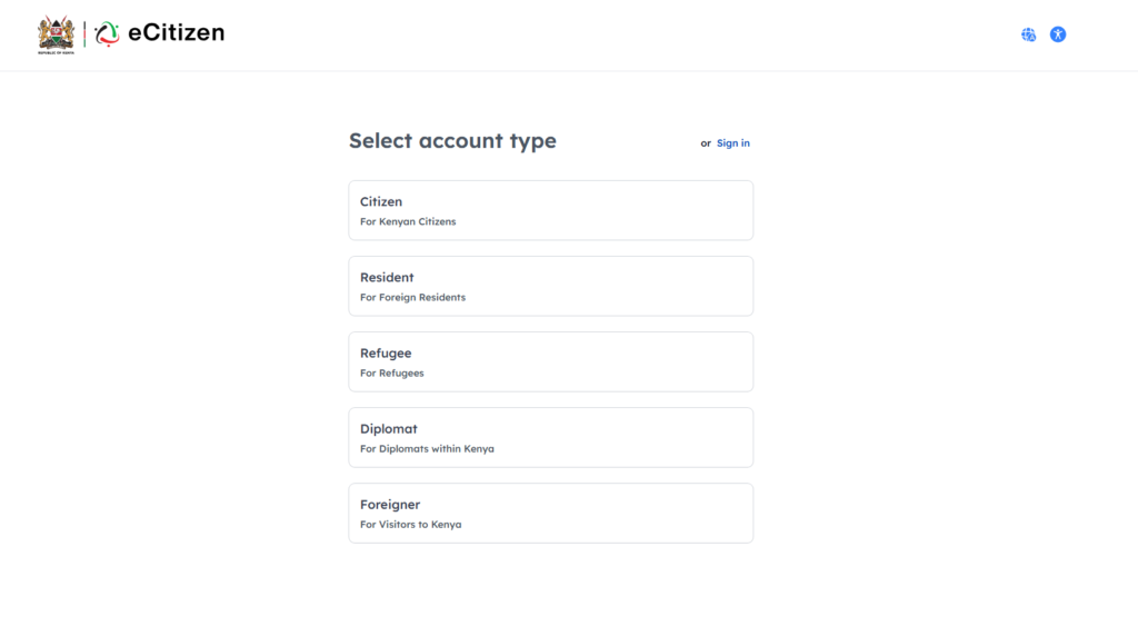 With these requirements, you can proceed with the process. For those not registered on the eCitizen portal, the process can be done within minutes and is surprisingly straightforward. All you need to do is visit the website registration link at https://accounts.ecitizen.go.ke/en/register, choose your registration type, specifically “Citizen — For Kenyan Citizens,” fill out the application form with accurate information, activate your account through the verification email sent to your registered email address, and then log in with your newly created credentials.