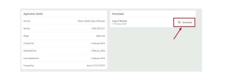 The final step involves downloading your own copy of the comprehensive vehicle records. The copy of records is a detailed PDF document that contains extensive information about the particular vehicle you searched, based on the registration or chassis number you provided.