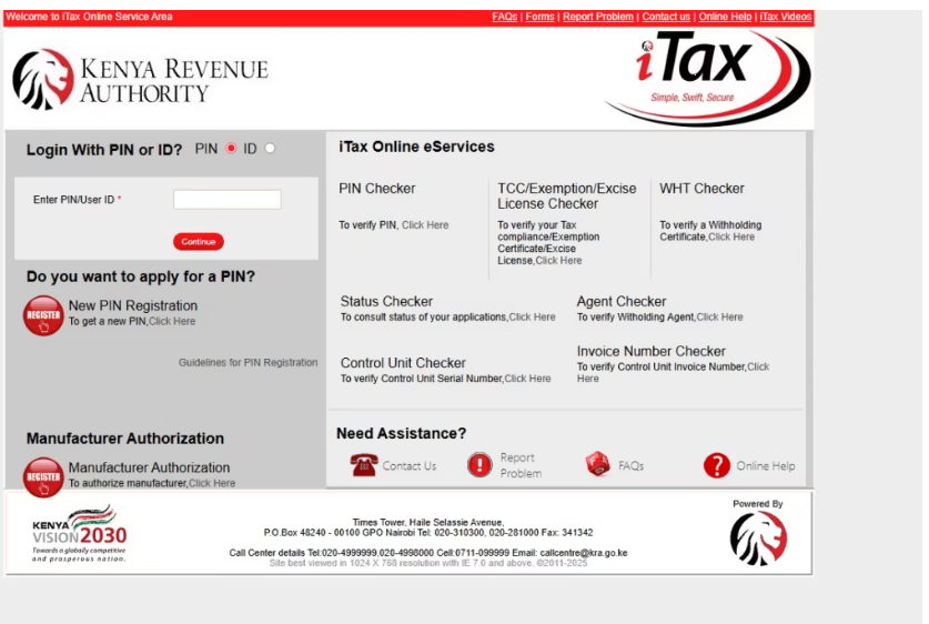 - Visit the KRA iTax portal and log in using your KRA PIN and password.