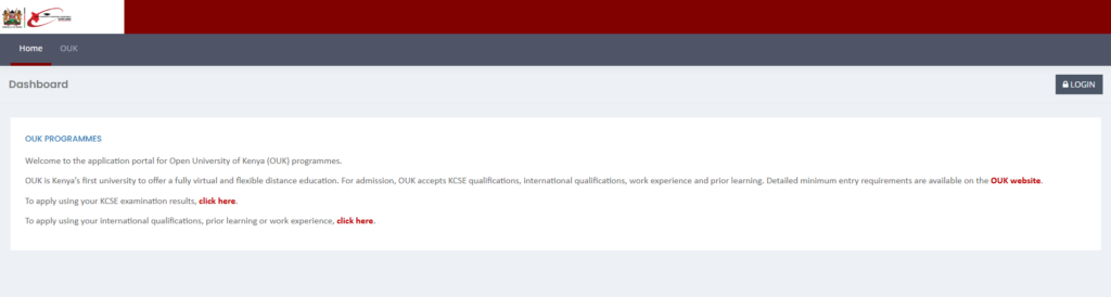 So long as you are eligible for any courses on offer, OUK encourages all Kenyans and non-Kenyans to apply for the programs available. Fortunately, you don’t have to visit the university physically to join, but instead, you can make your application by following the steps below: