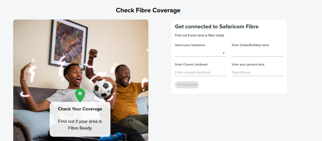 As of 2026, Safaricom Home Fibre is available in major cities, including Nairobi, Mombasa, Kisumu, Nakuru, and Eldoret, and it is constantly expanding to uncovered areas. To check if you are covered or not, it’s as simple as outlined in the process below: